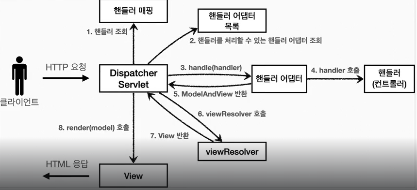 - 핸들러 실행 : 핸들러 어댑터가 실제 핸들러(컨트롤러) 실행한다