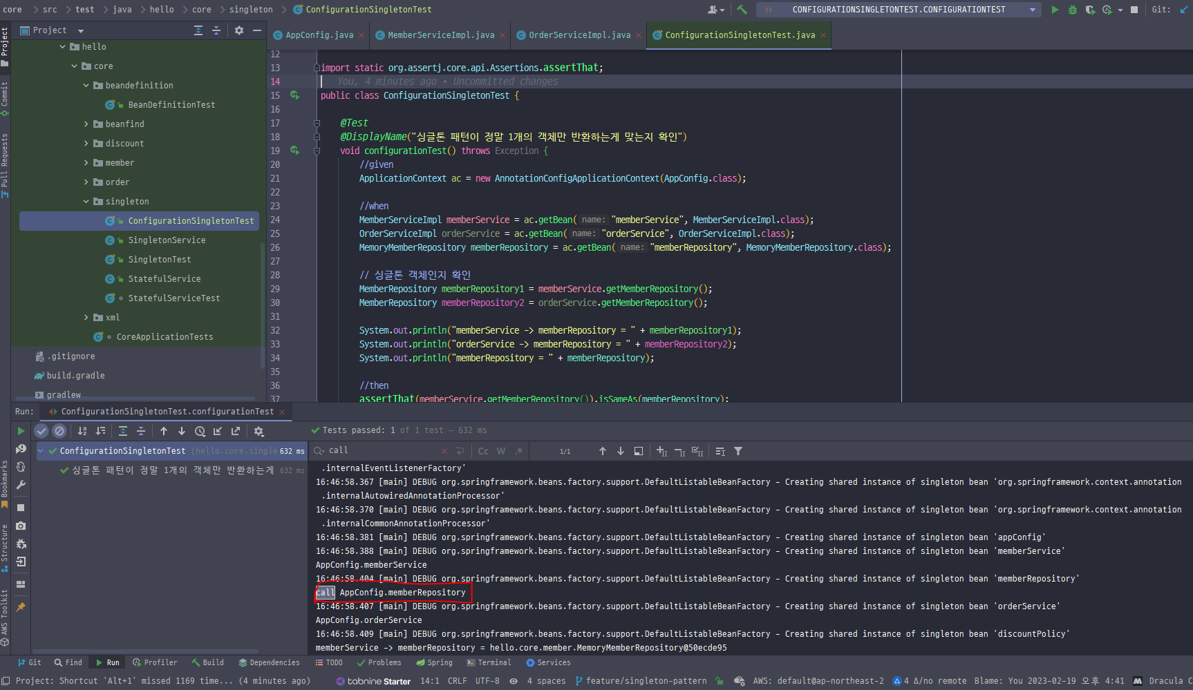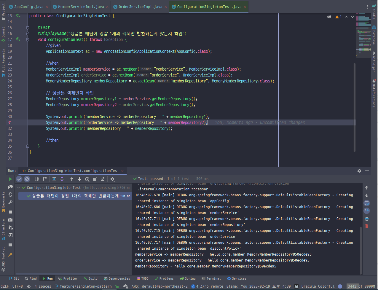 02-2. SingletonService 테스트 코드 생성