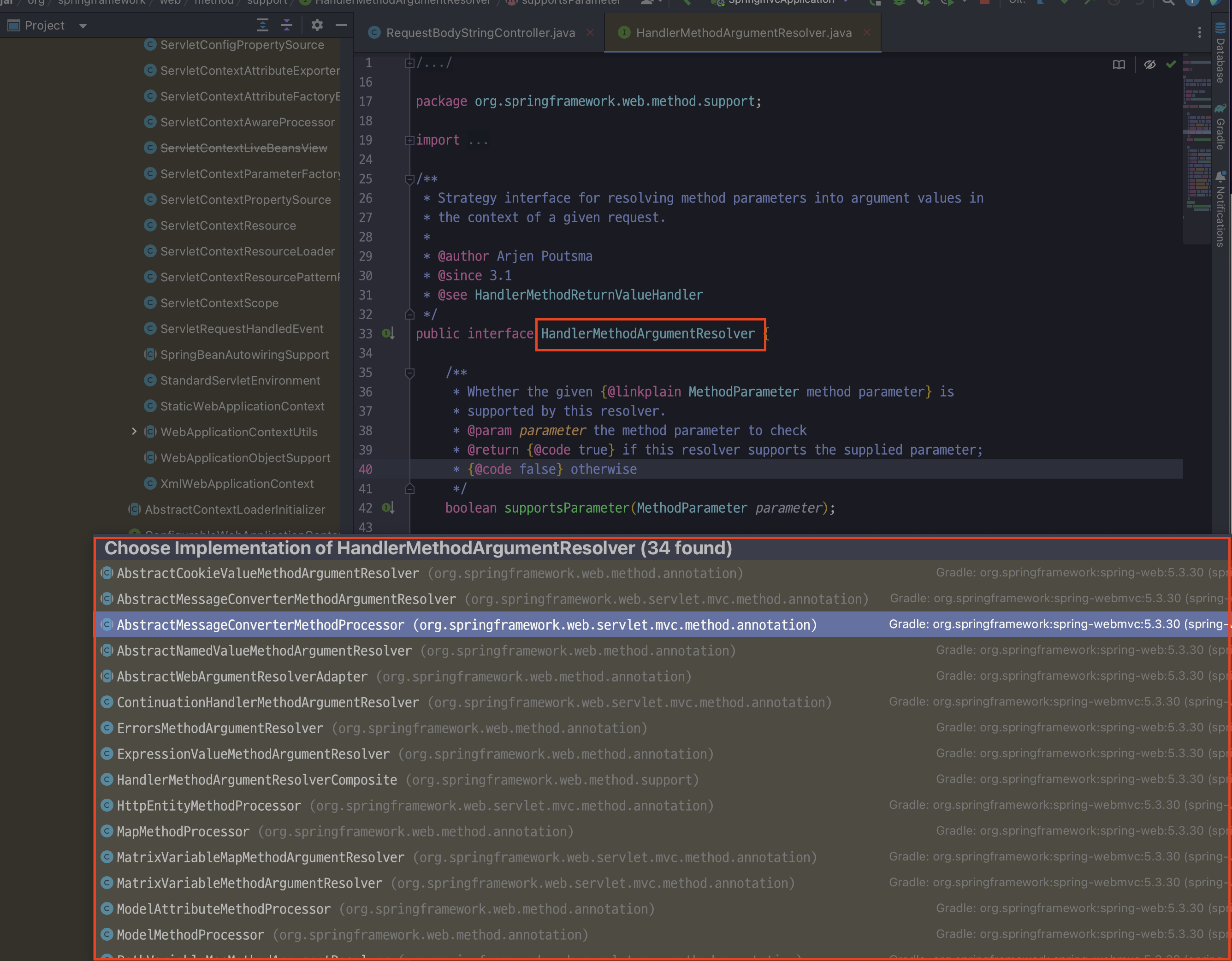 public interface HandlerMethodArgumentResolver {