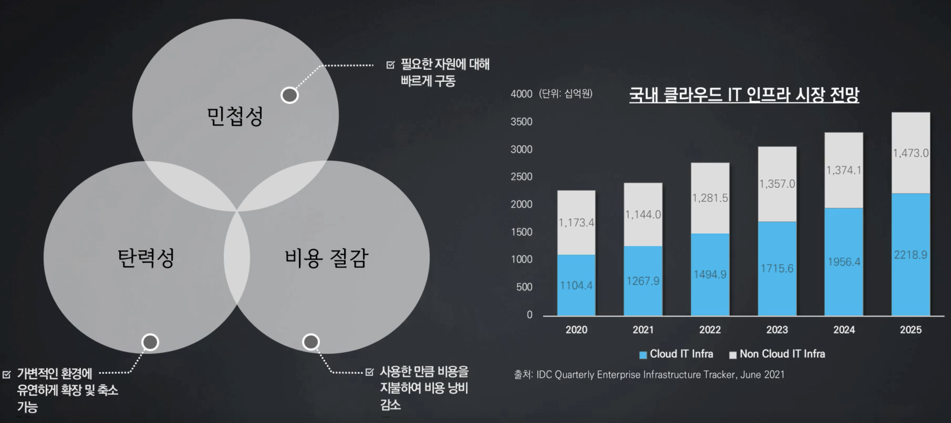- 온프레미스 → 확장성 고려한 설계 필요(why? → 사용 안해도 돈이 나감) → 즉, 탄력적인 유지 관리 어려움
