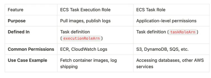 Difference between AWS Elastic Container Service's (ECS) ExecutionRole and TaskRole