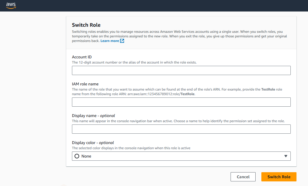 - Account ID: 전환하고자 하는 특정 AWS Account의 ID or alias 입력
