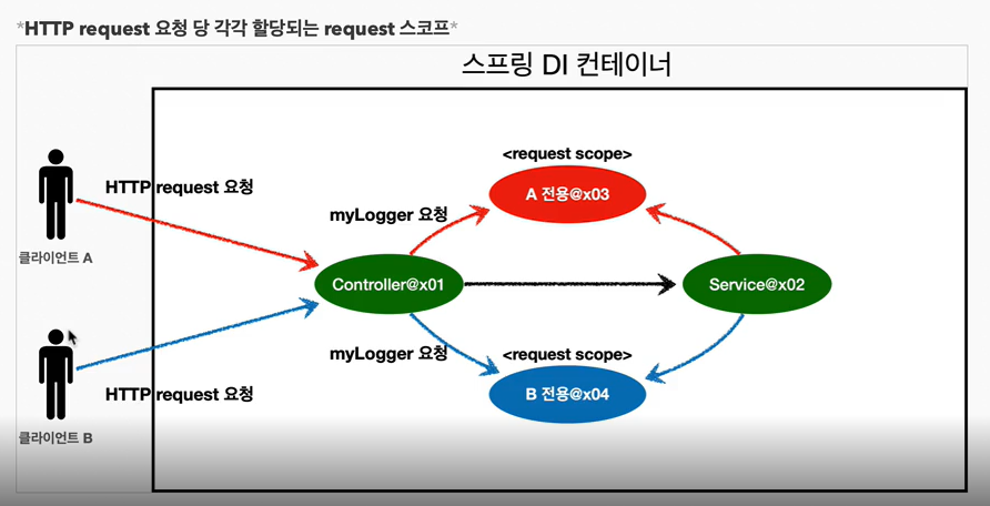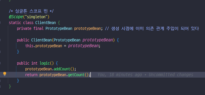 - 싱글톤이 아닌, 다른 스코프를 사용할때는 유의하여 사용을 해야함