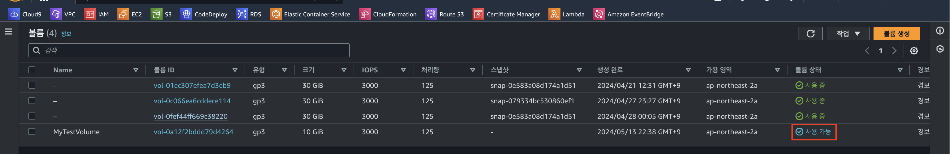 - 연결이 되면 해당 볼륨 상태가 사용 중으로 변경이 될 것이다