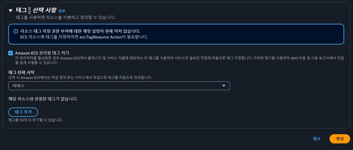 01-3. ECS Service 관리형 태그 켜기 옵션 여부 확인