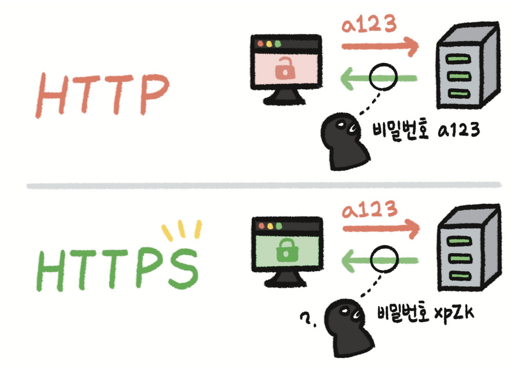 HTTPS(Hypertext Transfer Protocol Secure)는 HTTP에 보안(secure) 기능이 추가된 프로토콜이다. HTTP는 기본적으로 데이터를 평문(암호화되지 않은 상태)으로 전송하기 때문에, 클라이언트와 서버 간의 데이터가 감청당하기 쉽다. 반면, HTTPS는 데이터를 암호화하여 전송함으로써, 중간에서 정보가 노출되거나 변조되는 것을 방지할 수 있어 보다 안전한 통신이 가능하다.