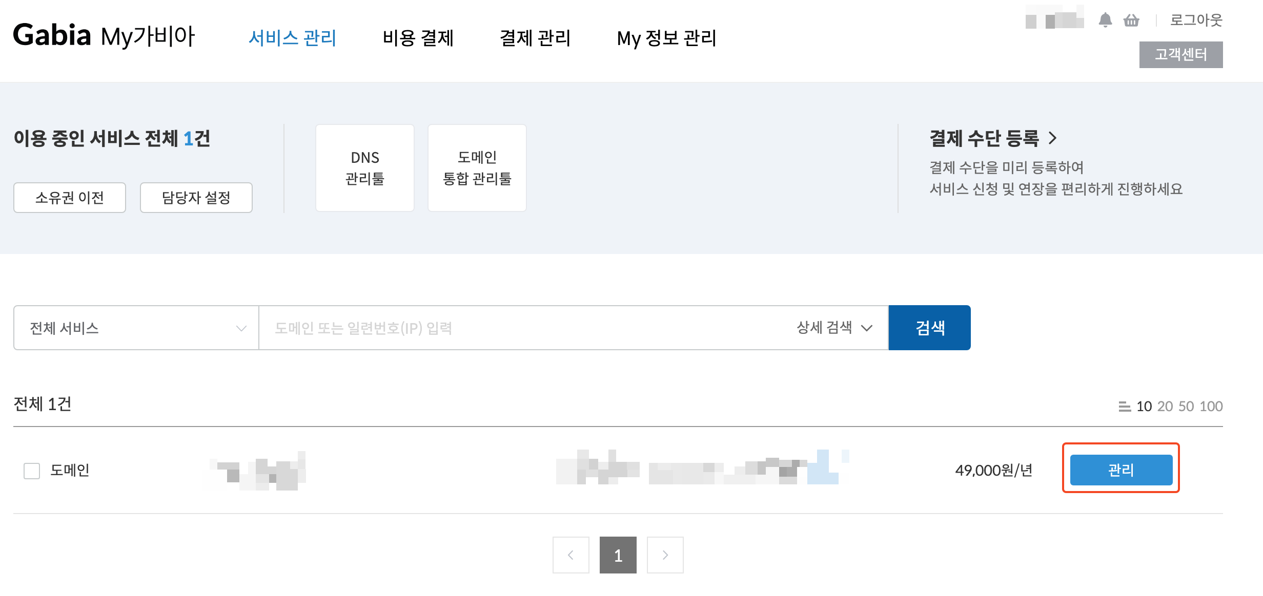 이제 Route53 호스팅 영역도 만들고, 레코드 생성도 하였으니 가비아의 NS를 Route53의 NS로 변경해야 한다. 위 이미지의 빨간 네모 박스의 값을 복사하고, 도메인을 구입한 가비아(My 가비아 페이지)로 이동한다.