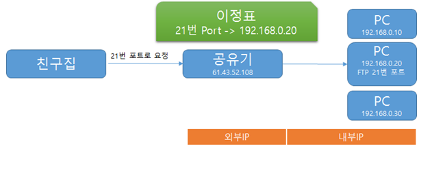 ※ 공유기는 사설 IP를 가진 내부 컴퓨터 중