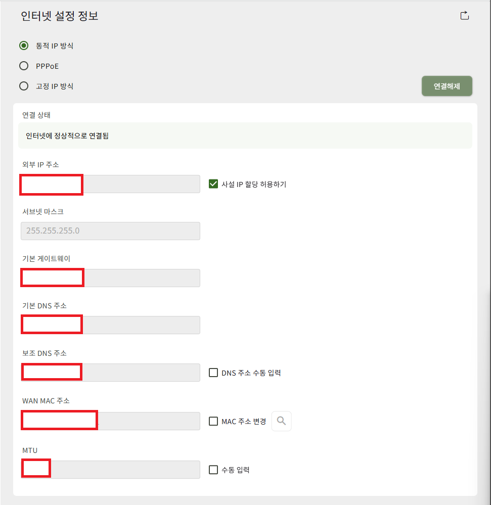 - 동적 IP 방식은, 인터넷에 연결할때마다 ISP 제공 업체에서 IP를 자동으로 할당해주는 방식을 의미한다.