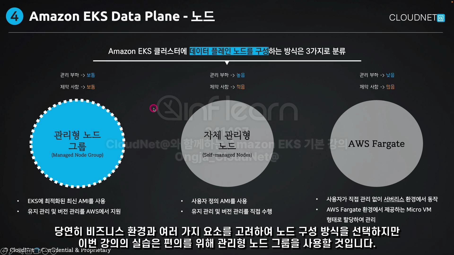 - 노드의 운영체제, 유지관리, 버전 관리를 AWS에서 일정 부분 지원