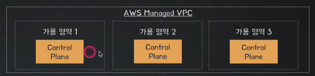 EKS의 Control Plane은 AWS가 관리하는 전용 VPC 내 여러 가용 영역(AZ)에 분산 배치되어 운영된다. Control Plane은 API Server, Controller Manager, Scheduler, etcd로 구성되며, 이러한 다중 AZ 구성으로 고가용성과 안정적인 클러스터 운영을 보장한다.