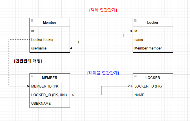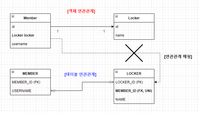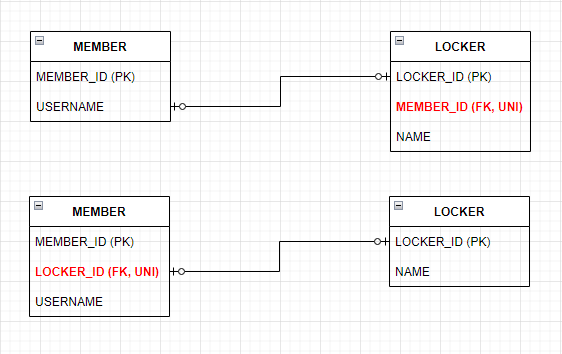 - 반대일 경우에는 MEMBER 테이블이 LOCKER_ID를 가지는게 맞다.
