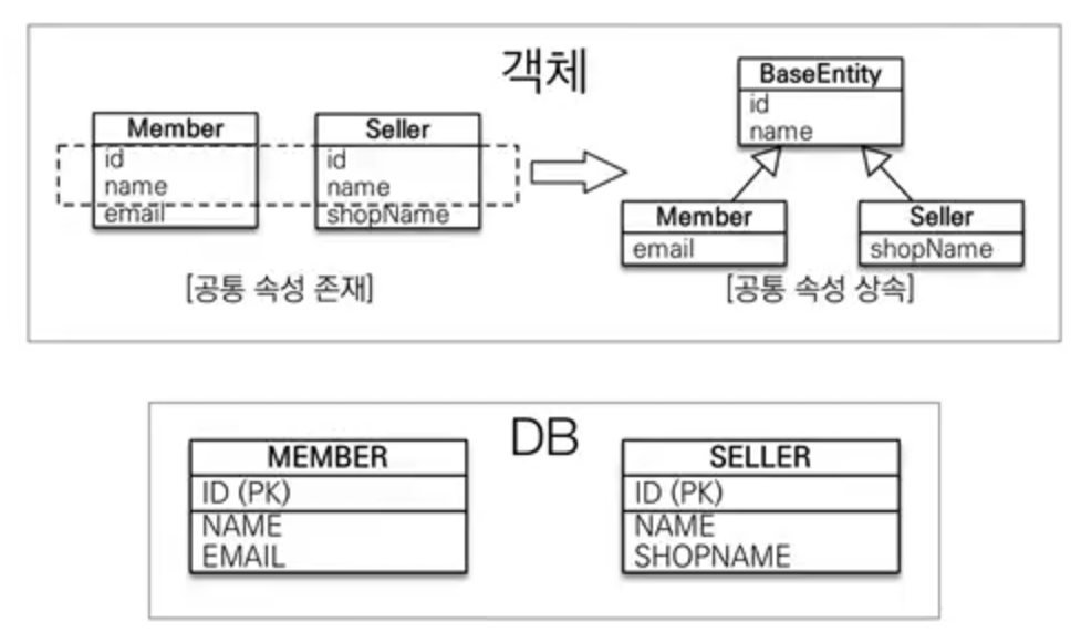 - @Entity 클래스는 @Entity나 @MappedSuperclass로 지정한 클래스만 상속 가능.