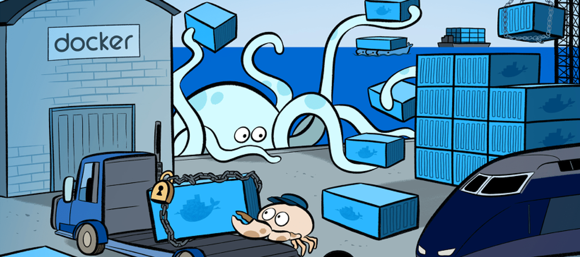 컨테이너를 운반 하는 모습, 마치 개발자가 서버의 자원을 그대로 이관하는 모습이랄까..,