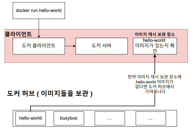 - hello-world 이미지를 실행 시키려고 하는데 로컬 캐시 보관 장소에 해당 이미지가 존재하지 않음