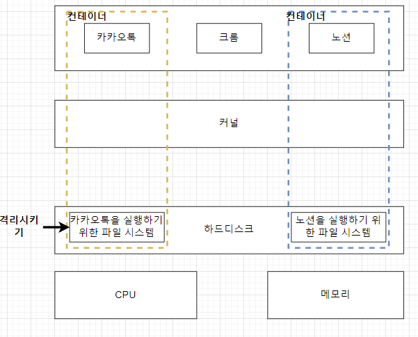 - 컨테이너는 각각의 단위 내에서 격리되어 구동이 된다