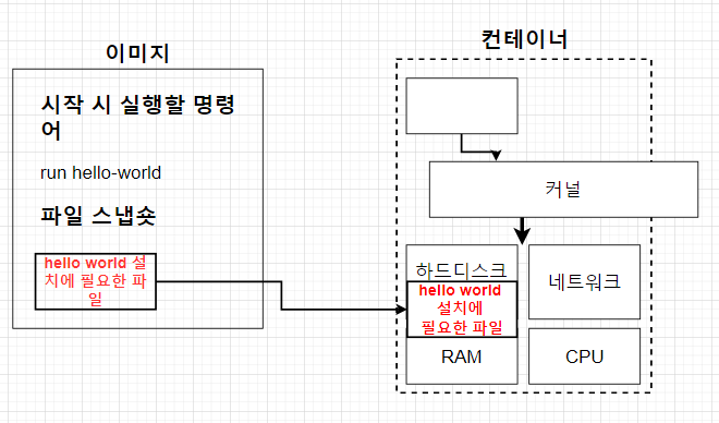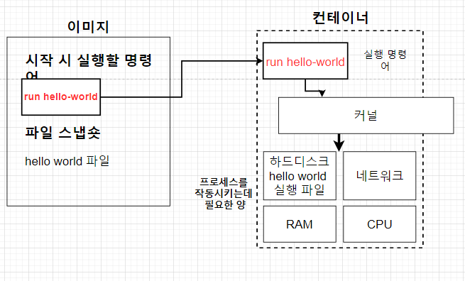 중요한 부분은 이미지 안에는 실행 시 시작될 명령어와, 파일 스냅샷이 존재한다는 점.