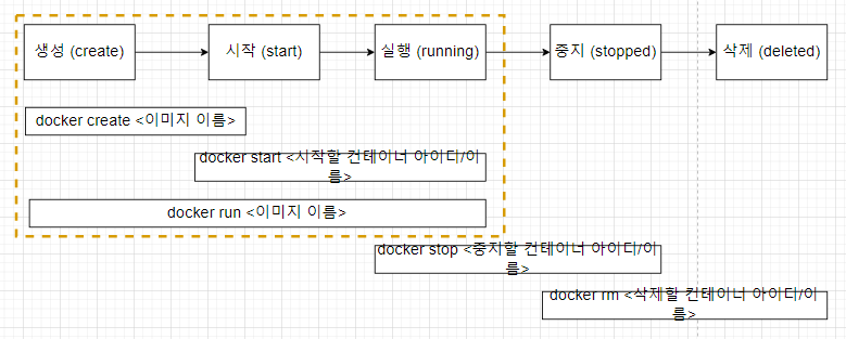 - 위 명령어 입력 시 도커 이미지에 있는 파일 스냅샷은 컨테이너 안의 H/D에 옮겨진다