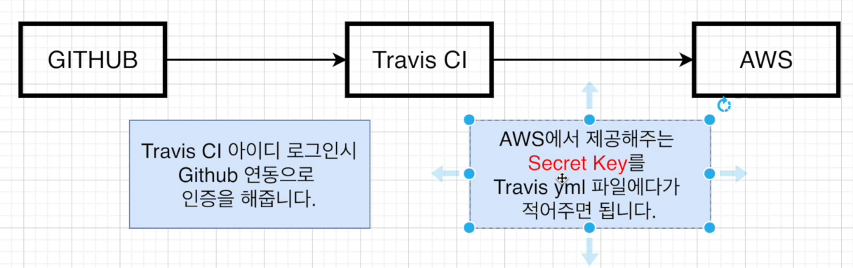지금까지는 travis CI에 기본적인 AWS 설정만 작성 해둔 상태지만 Travis CI와 AWS가 실질적으로 소통하기 위한 인증 부분을 작성하지 않음. 이번 시간에는 해당 인증 과정을 정리하고 배포까지 진행 해보자.