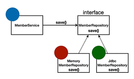 MemberRepository memoryMemberRepository = new MemoryMemberRepository(); // 구현 클래스에도 의존한다